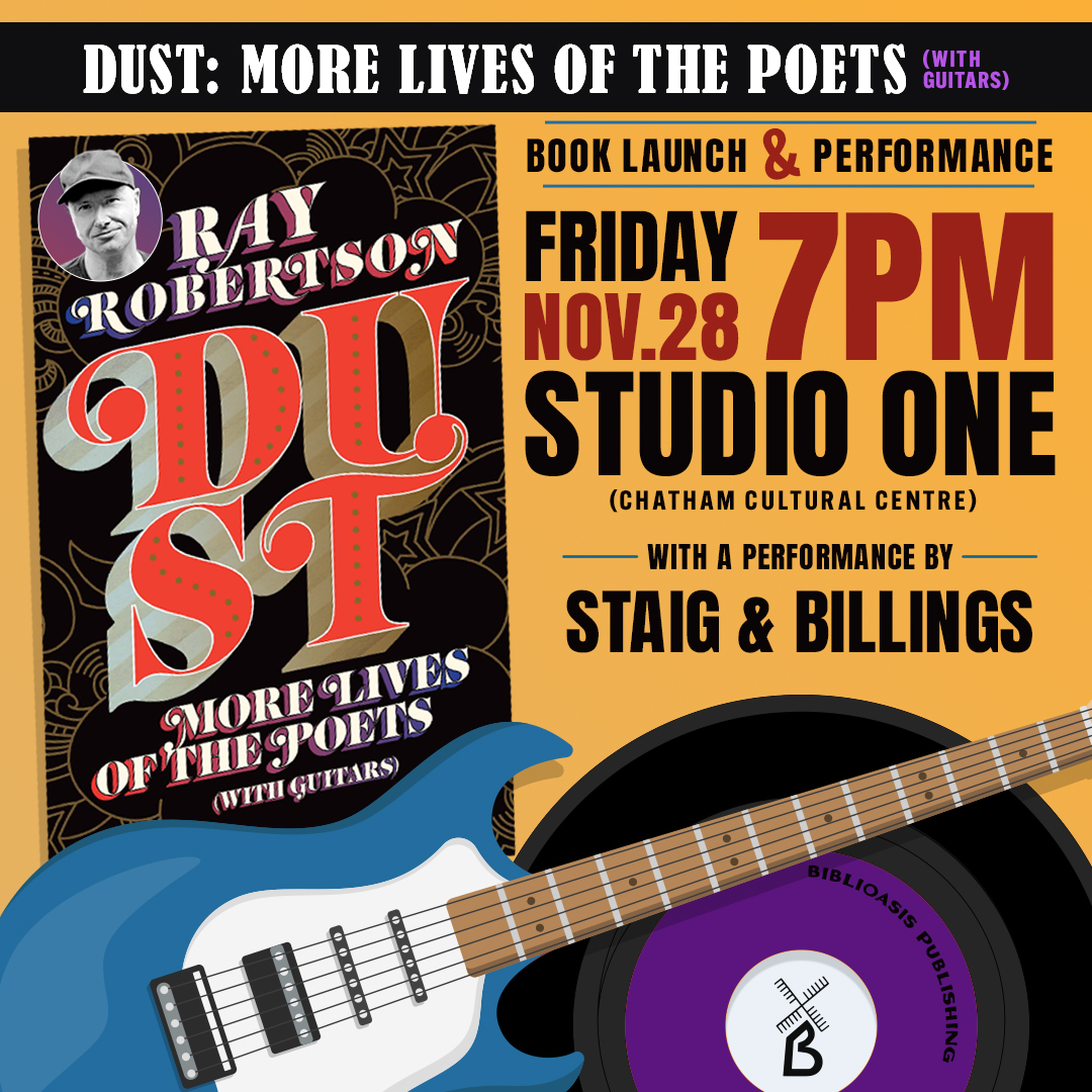Join us in Windsor for the launch of Ray Robertson's Dust: More Lives of the Poets (with Guitars)! Ray will be reading from his new book, followed by a performance […]