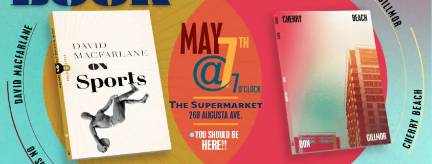 Toronto readers! Join us for the double book launch of Don Gillmor’s Cherry Beach and David Macfarlane’s On Sports. The launch, hosted by our intrepid sales coordinator Hilary, will be held at The Supermarket, and include a reading, conversation and Q&A, and books will be for sale and signing from Ben McNally.